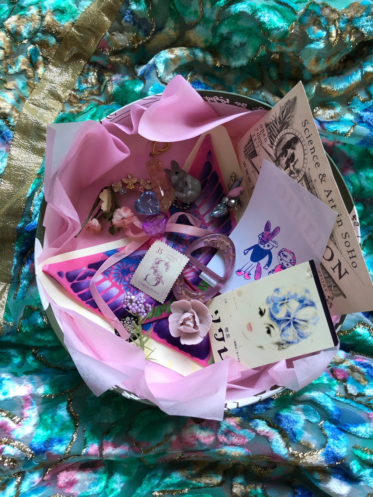 箱はひとつずつ心を込めて装飾し、中には、ふと届いたらワクワクするような子供の頃の思い出の破片や手紙を入れることにしました。