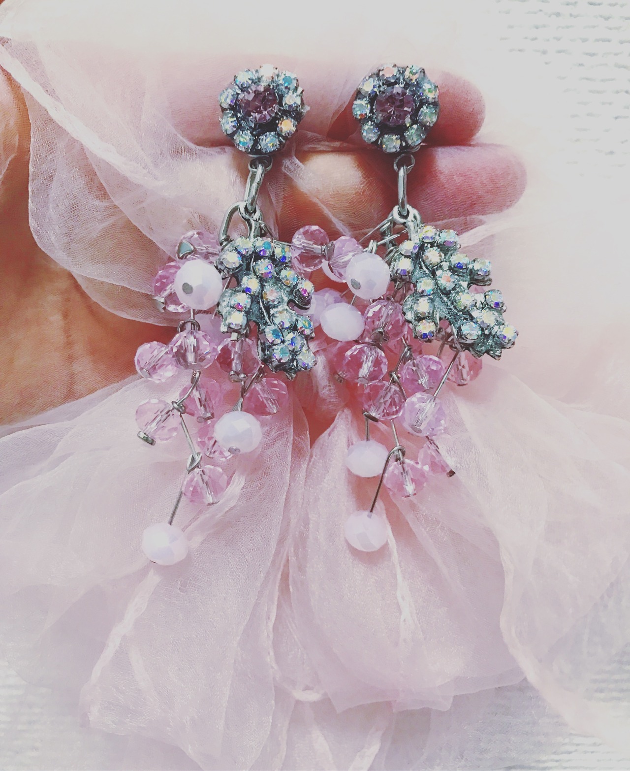 綿菓子色の葡萄、ガラスの心イヤリング