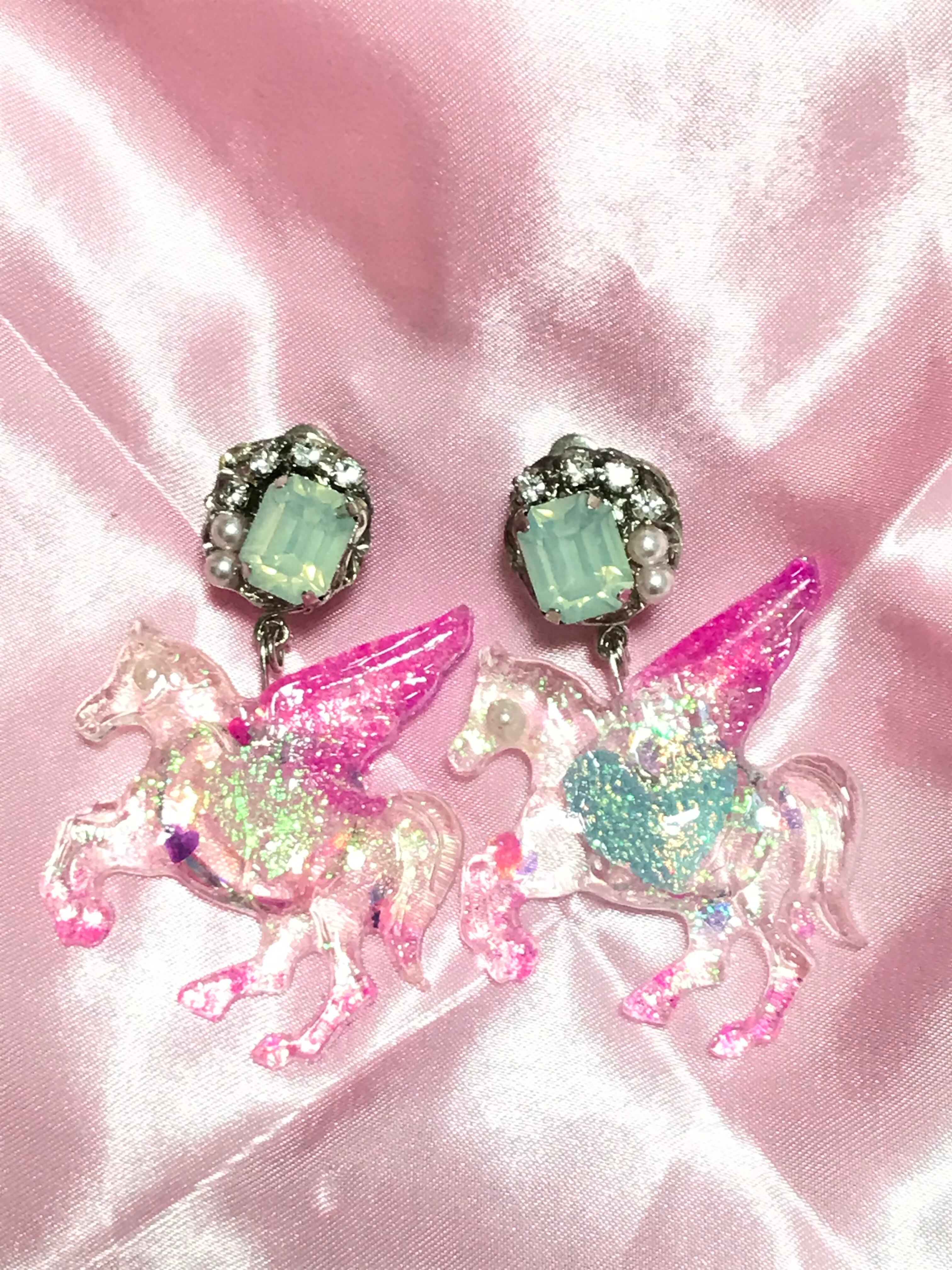 愛は透明なユニコーンイヤリング